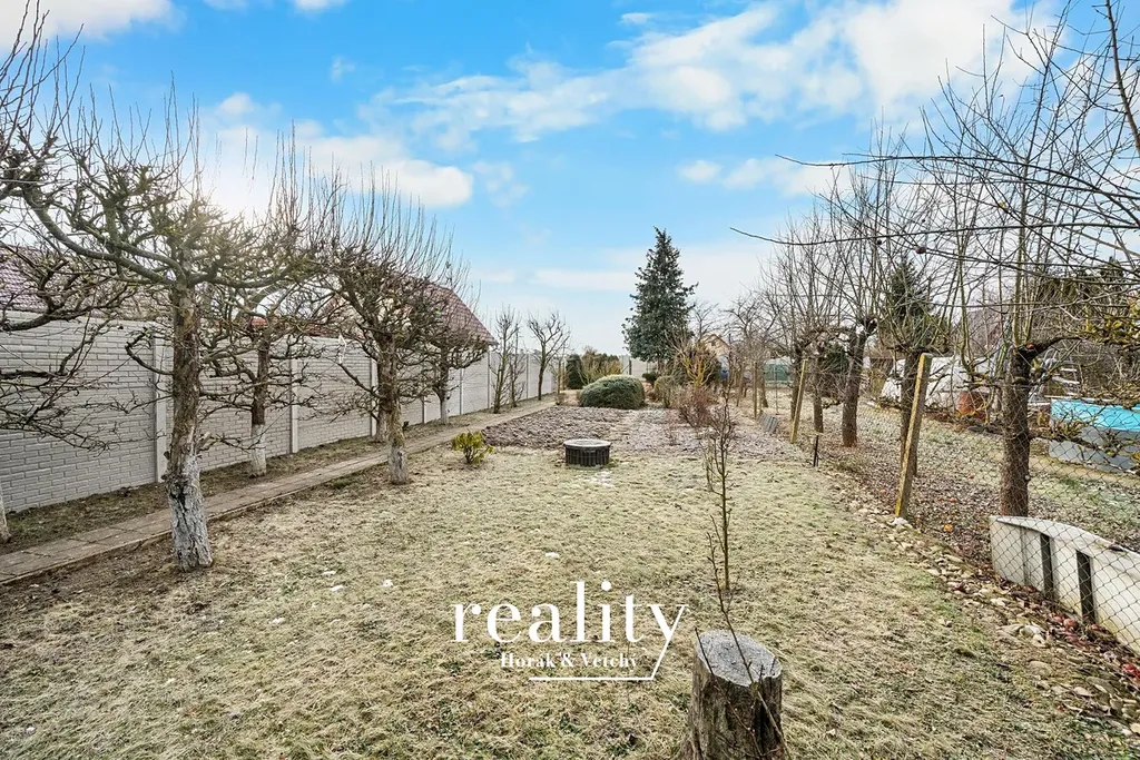 Zahrada o výměře 413 m² má rovinatý terén a praktický obdélníkový tvar, díky čemuž je velmi dobře využitelná. Velkou výhodou je bezproblémový příjezd přímo k pozemku, který výrazně zvyšuje komfort užívání a dostupnost v průběhu celého roku.