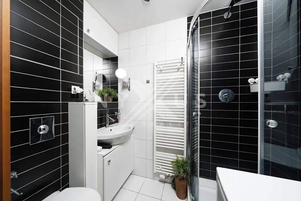 Nadstandardní provedení, prémiové materiály, a maximální praktičnost. Byt má dostatek úložných prostor díky vestavnému nábytku.