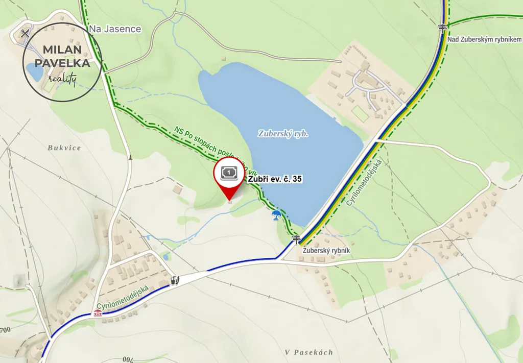 Chata je obklopena lesy, loukami a v těsné blízkosti cca 100 rybníkem Zubří.