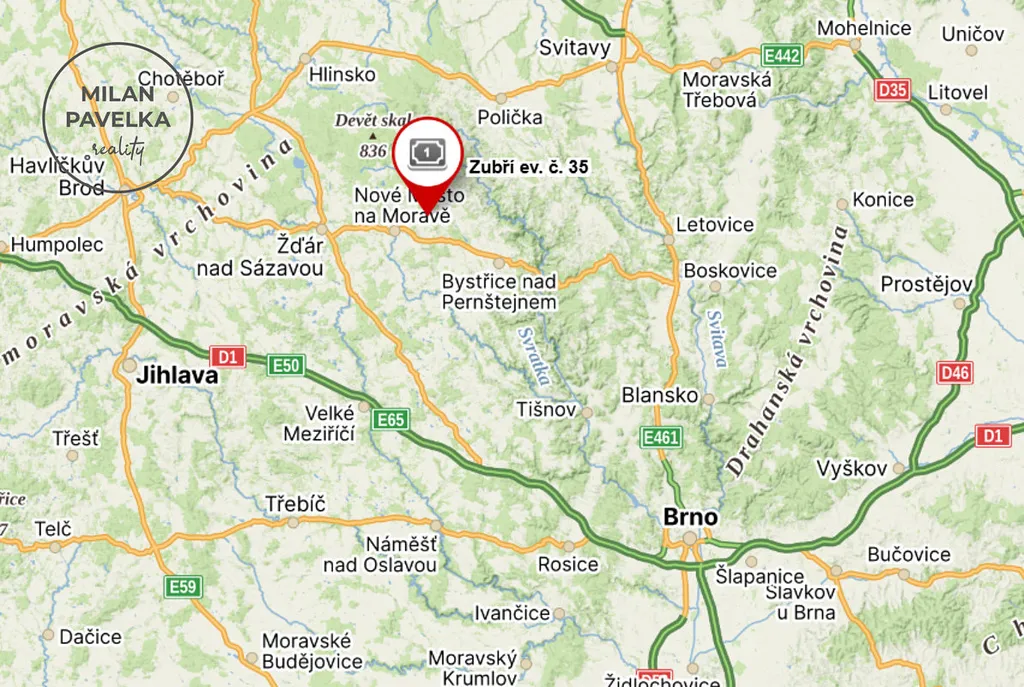 Nové město na Moravě je vzdáleno cca 4 km západním směrem, Žďár nad Sázavou 16 km západním směrem a Brno 65 km jihovýchodním směrem.