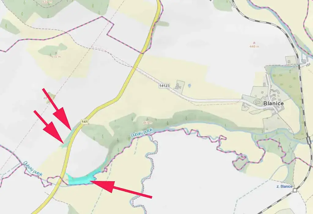 Prodáme pozemek, louku s porostem stromů v k.ú. Blanice, po okraji protéká Dubský potok, parc.č. 135 a 136. Přímo přístupný z hlavní silnice. K tomu ještě dva menší pozemky také u hlavní silnice (ideální pro umístění reklamy), parc.č. 101 a 139/2.