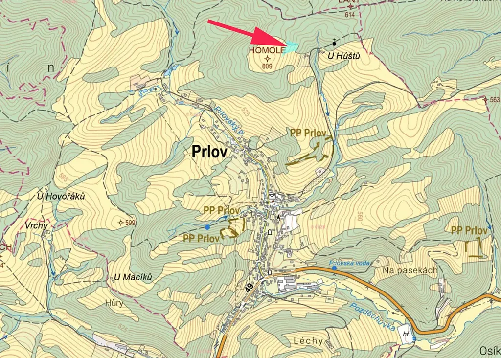 Prodáme pozemek, louku s porostem stromů v k.ú. Prlov, parc.č. 1293/1 a další.