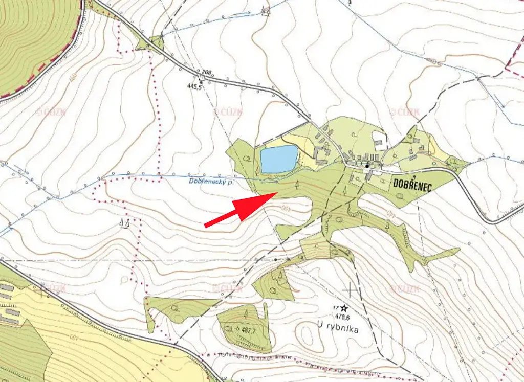 Prodáme pozemek, malou zahradu - sad poblíž potoka s několika starými stromy k.ú. Dobřenec, parc.č. 55/1.