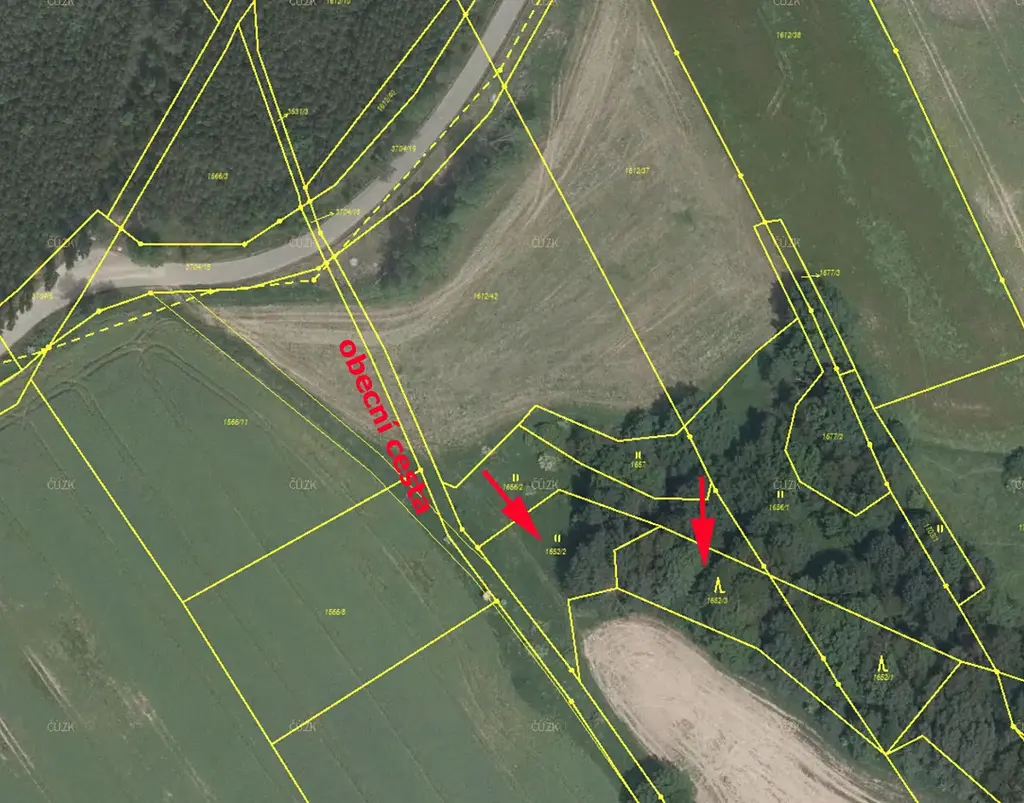 Prodáme louku a les s porostem stromů (na louce možno vytěžit), přímo přiléhající k obecní polní cestě v k.ú. Dubnice pod Ralskem, parcely č. 1652/2 a 1652/3.