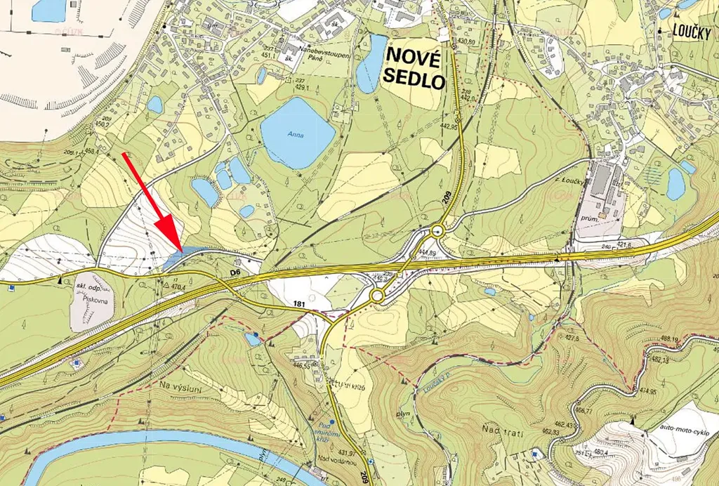 Prodáme louku s porostem stromů v k.ú. Nové Sedlo u Lokte, parcela č. 1002/11, u křížení dálnice a místní komunikace, skvělé místo pro mobilní reklamu!