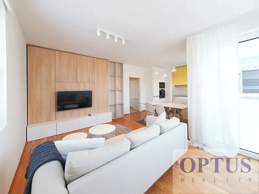 Nabízíme k pronájmu luxusní, designově zařízený byt 2 + kuchyňský kout (56,4 m2) + balkon 4,75 m2 orientovaný na západní stranu, nachází se ve 4. patře s výtahem v novostavbě rezidenčního projektu Botanica.