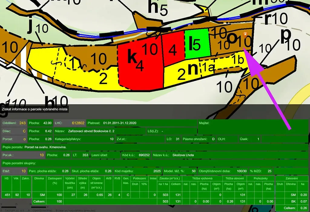Prodáme pozemek - les blízko obce, v k.ú. Skočova Lhota, parcelní číslo 95/10