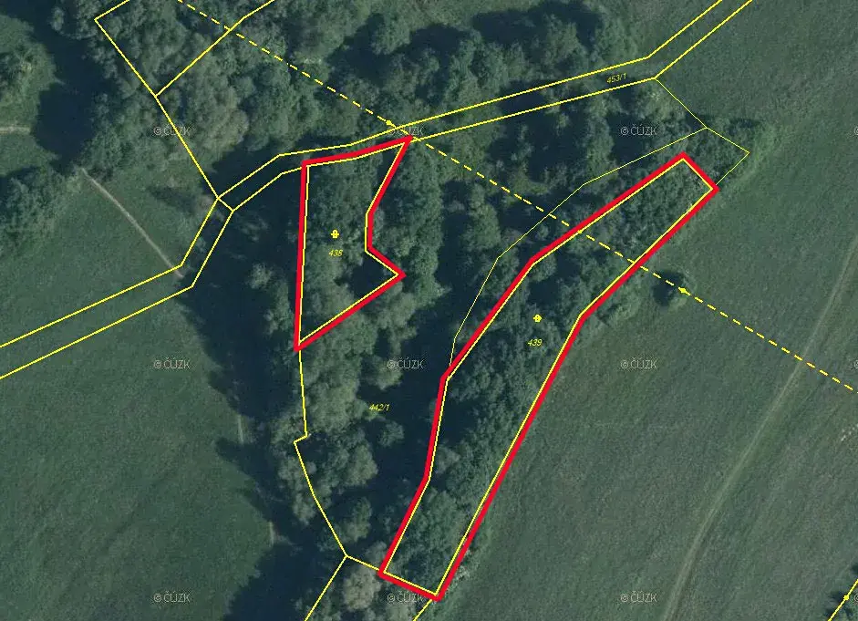Prodáme pozemek v k.ú. Jezvé, parc.č. 438 a 439, ostatní plocha, porostlá vzrostlými stromy. Možno prodat i jednotlivě.