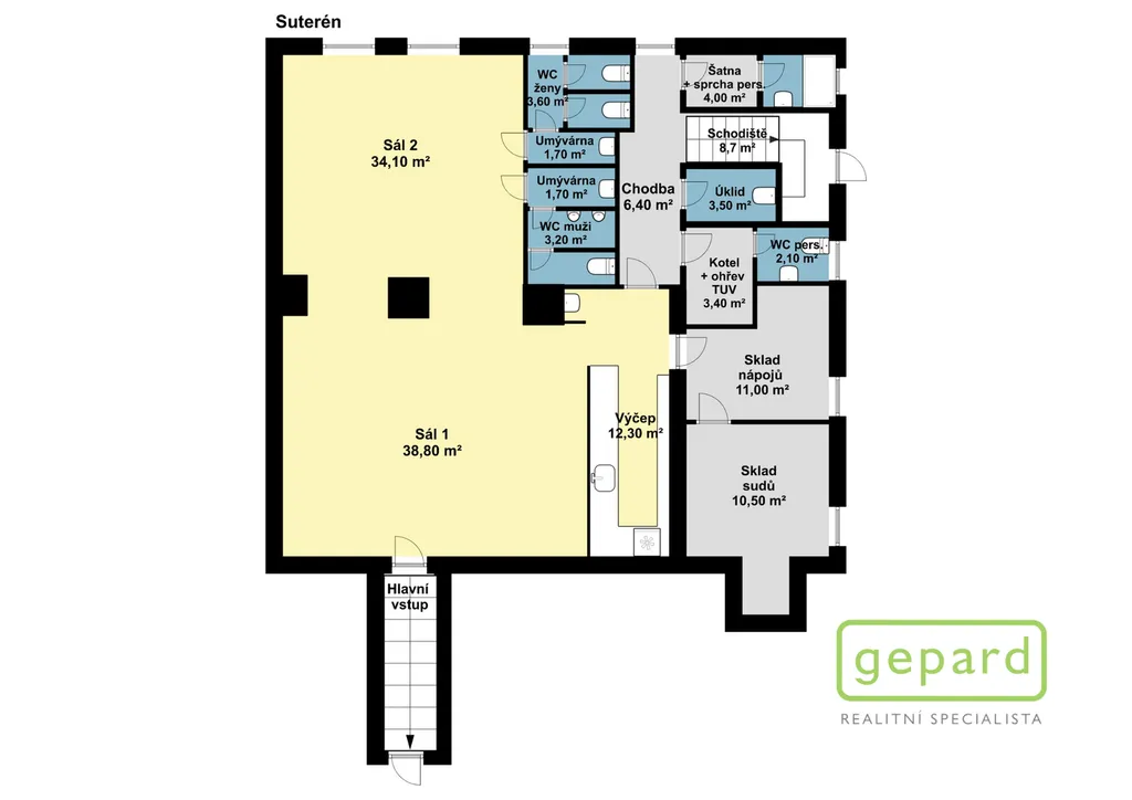 Budova má jedno podzemní a dvě nadzemní podlaží. V suterénu je stylová vinárna/bar, vhodná pro provoz i soukromé akce. V přízemí je restaurace se zázemím; část sálů je aktuálně oddělena a upravena jako bytová jednotka o dispozici 2+1 se samostatným vstupem po venkovním ocelovém schodišti na zadní straně objektu. V podkroví jsou tři bytové jednotky (dispozice 1x 2+1 a 2x 2+kk) a pokoj (ubytovna) s příslušenstvím, vstup do podkroví je rovněž zajištěn po venkovním ocelovém schodišti na zadní straně budovy. Objekt je napojen na veškeré inženýrské sítě. Vytápění a ohřev vody pro suterén a přízemí zajišťuje společný plynový kotel, bytové jednotky mají samostatné elektrokotle a boilery. Objekt je po částečné rekonstrukci (střecha, nezkolaudované bytové jednotky v podkroví a v přízemí).