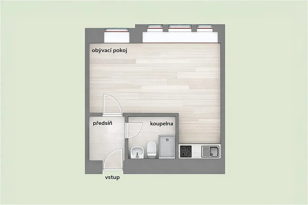 Podnájem bytu 1+kk se nachází v 1. patře cihlového domu, ihned k nastěhování.