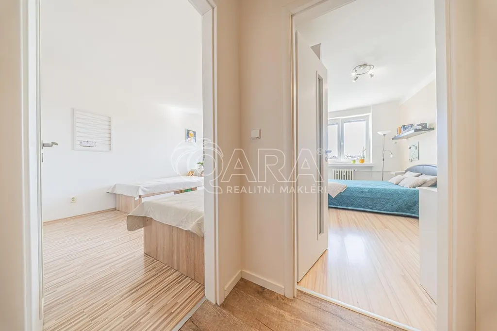 Byt prošel kompletní rekonstrukcí a nabízí praktické dispoziční řešení, kde jsou všechny obytné místnosti neprůchozí. Vstup do bytu vede přes společné zádveří sdílené pouze s jedním sousedním bytem, což přispívá k většímu soukromí a klidu.