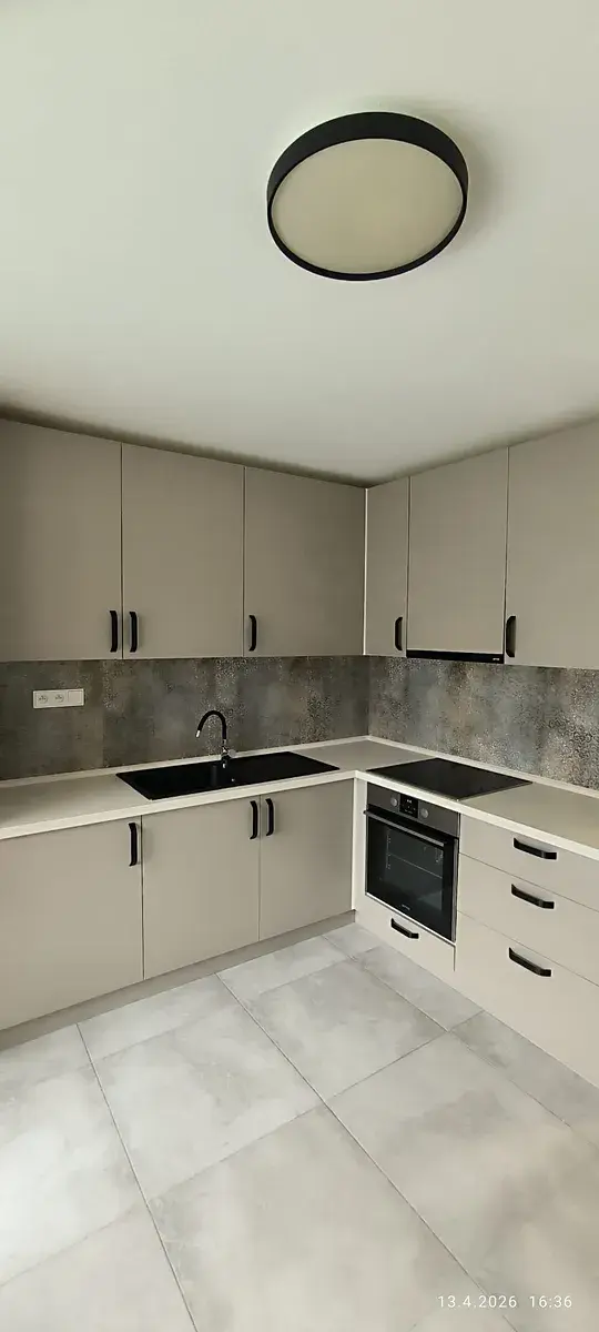 Byt disponuje velkou čtvercovou kuchyní s rohovou kuchyňskou linkou s vestavěnými spotřebiči zn. Gorenje horkovzdušná trouba, varná indukční deska, digestoř.