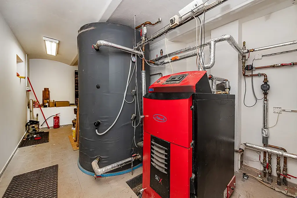 Hlavní objekt je zateplen, včetně podlah a střechy, nově vystavěná část je postavena z páleného keramického zdiva Porotherm. Objekt je vytápěn kotlem na dřevoplyn o výkonu 25KW, v 1 NP je v části objektu rozvedeno podlahové vytápění, jinak radiátory. V objektu je akumulační nádrž s objemem 2000 litrů vylepšující teplotní komfort vytápění. Ohřev vody je řešen bojlery.