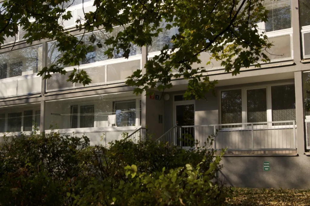 Byt se nachází v 1 nadzemním podlaží a skládá se ze vstupní chodby, vstupu do koupelny a samostatné toalety. Vpravo od vstupu jsou dva pokoje. Vlevo je prostorný obývací pokoj, z kterého se vchází do kuchyně s prostorným kuchyňským koutem. Byt prošel částečnou rekonstrukcí. Je vhodný i jako sdílené bydlení.