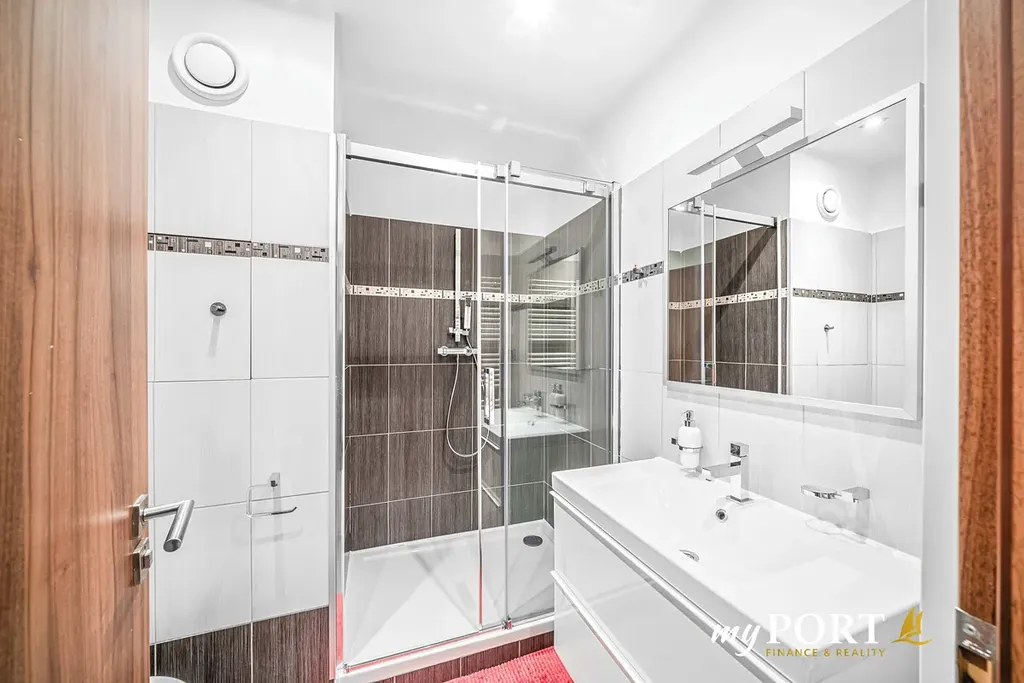 Koupelna disponuje novým sprchovým koutem z roku 2022, pračkou a WC.