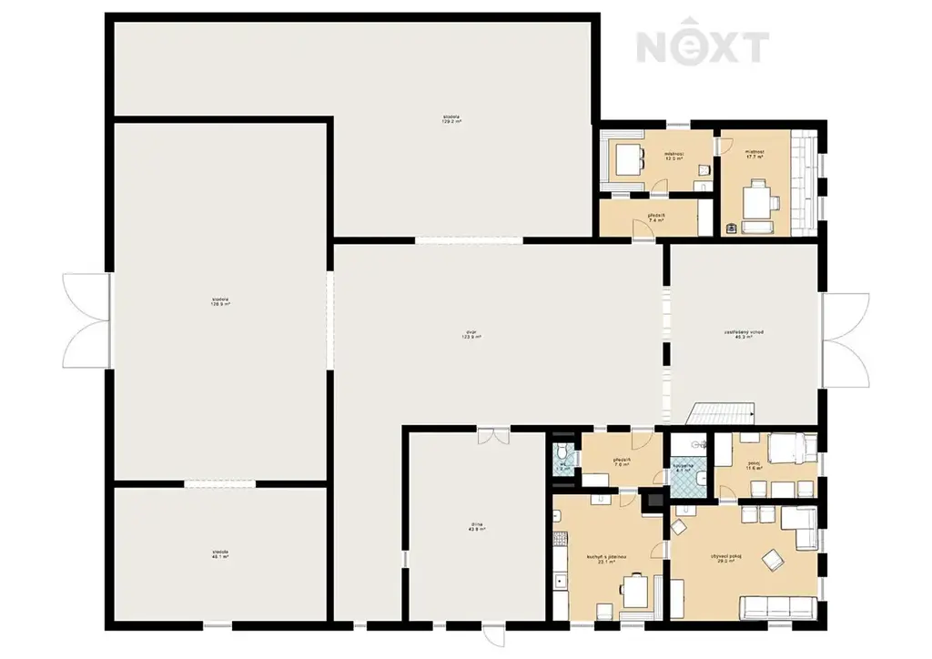 Velkou předností této nemovitosti je zcela uzavřený dvůr, který zajišťuje naprosté soukromí – dvůr je obklopen budovami celé usedlosti a není nijak rušen okolím.