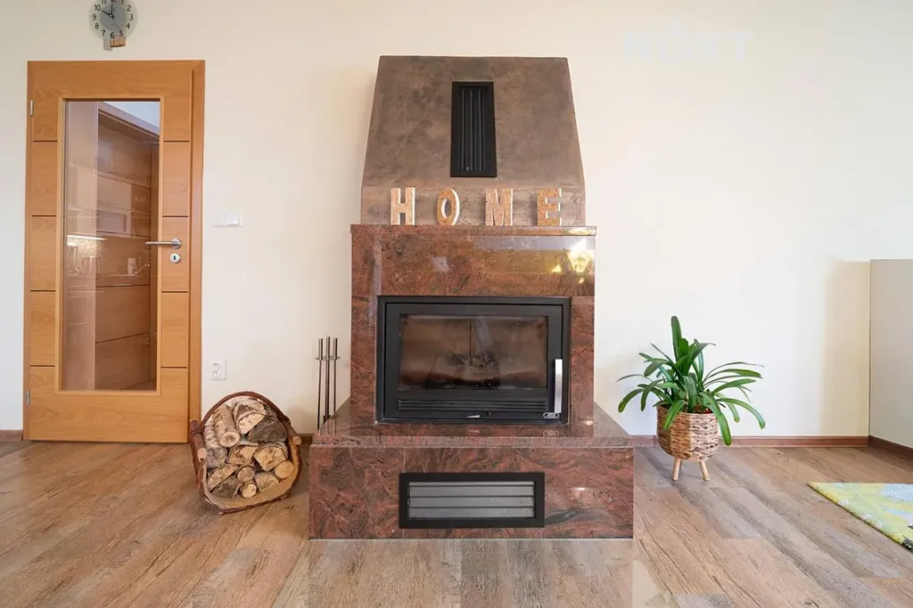 Vytápění domu je řešeno plynovým kotlem s rozvodem do radiátorů, přičemž další možností je krbová vložka s výměníkem, která rovněž napájí radiátory a přináší příjemnou atmosféru i úsporu nákladů.