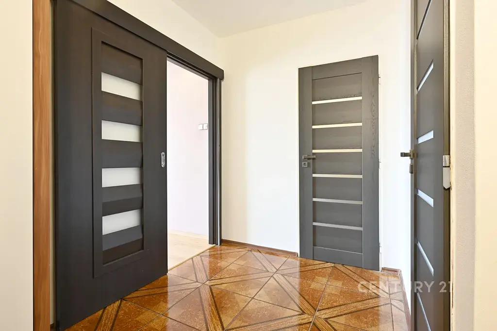 Kvalitní detaily: Moderní interiérové dveře (včetně posuvných do pouzdra), chodba s praktickou dlažbou.