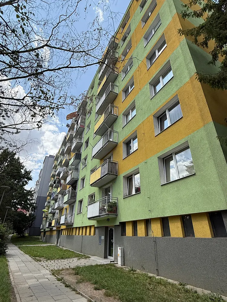Byt je v 2. patře zatepleného paneláku – nový výtah, opravené stoupačky, hezký vchod