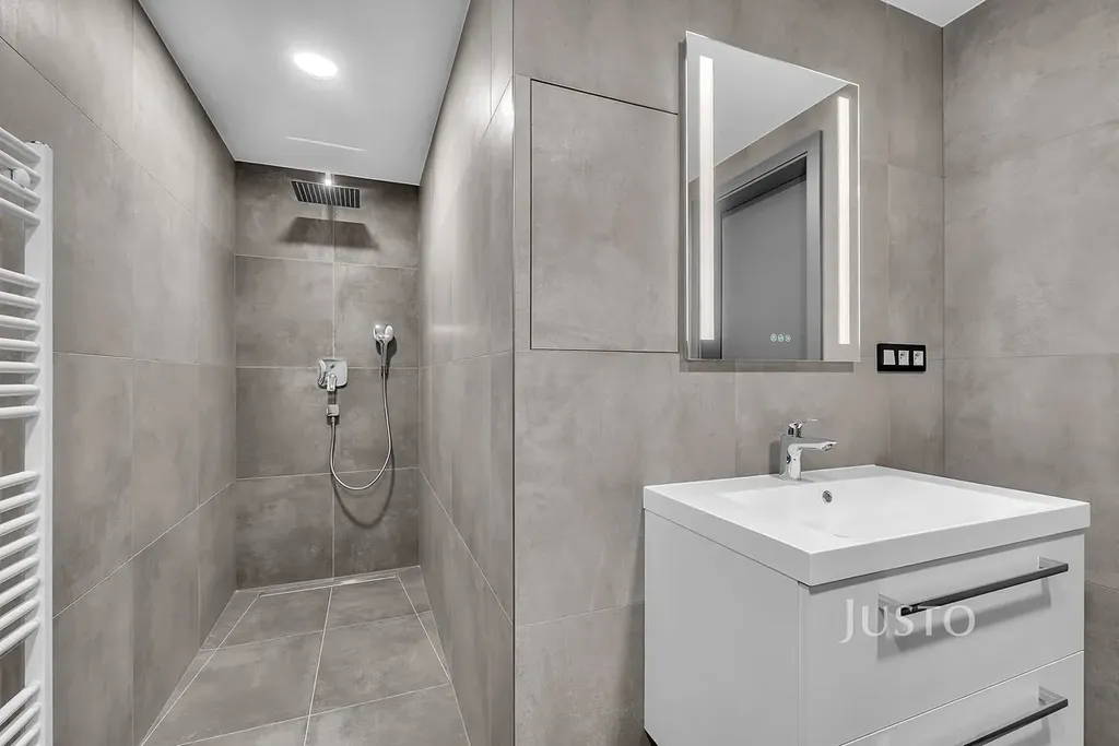 Velmi příjemným benefitem je terasa orientovaná do klidné části vnitrobloku, která poskytuje prostor pro relaxaci i posezení. Kvalitní moderní provedení bytu zahrnuje hliníková okna s venkovními roletami, podlahové vytápění napojené na tepelné čerpadlo a klimatizaci. Dům je zateplený a poskytuje vysoký standard bydlení.