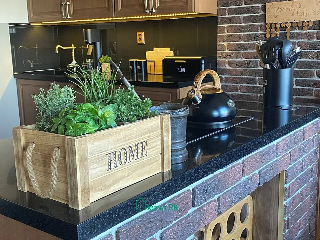 Srdcem bytu je spodní patro, kde se rodinný život odehrává v prosvětleném obývacím pokoji s kuchyňským koutem v poctivém dřevěném dekoru, který dodává prostoru hřejivý nádech a klid. Z obývacího pokoje můžete vyjít na balkon (8 m²), který je jako stvořený pro ranní rituály s šálkem kávy při východu slunce. Praktické zázemí doplňuje samostatné WC.
