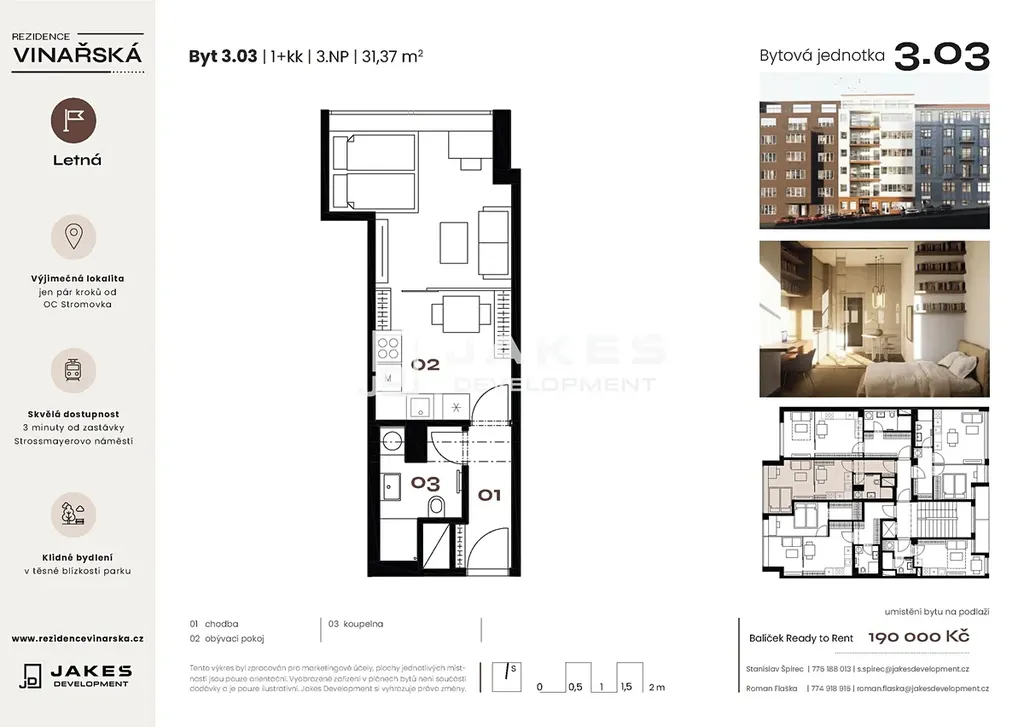 Bytová jednotka je orientována do klidného vnitrobloku, což zajišťuje maximální soukromí, minimum hluku a příjemnou atmosféru pro každodenní bydlení. Dispozice 2+kk nabízí praktické a efektivní využití prostoru. Jednotka je ideální jak pro vlastní bydlení, tak jako zajímavá investiční příležitost s dlouhodobým potenciálem, například pro následný pronájem.