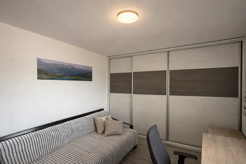 Velkou výhodou je přímý vstup na terasu jak z obývacího pokoje, tak i z ložnice, což dodává bytu vzdušnost a příjemné propojení interiéru s venkovním prostorem.