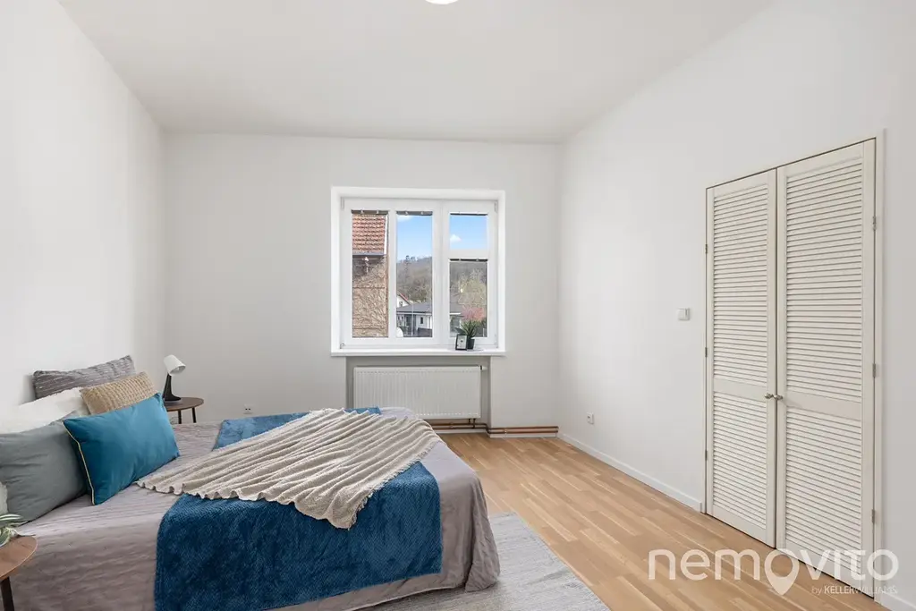 Stropy mají výšku 2.9 metru, což v kombinaci s většími okny utváří příjemný a světlý dojem. Vytápění je řešeno vlastním kotlem, který je napojen do radiátorů. K bytu taktéž náleží kóje na pozemku, kde je zároveň možné parkování (je však nevyhrazené). Dům je umístěn mezi ulicí Hlavní a rybníkem, necelých 10 km od Berouna. Pokud vás o bytě zajímá více informací, rád vám pošlu odkaz na samostatný web s dalšími informacemi (plánek, více fotek).