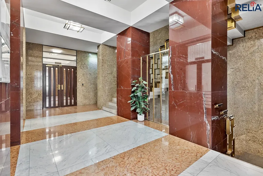 Interiér je pak fascinující souhrou dvou světů: společné prostory a schodiště dýchají luxusem monumentálního stylu Art Deco (leštěný kámen, mosazná zábradlí, velkorysé portály). Samotné pracovní zóny (se světlou výškou až 3,1 m) jsou naopak z velké části vysoce moderní, vzdušné a místy oddělené skleněnými příčkami.