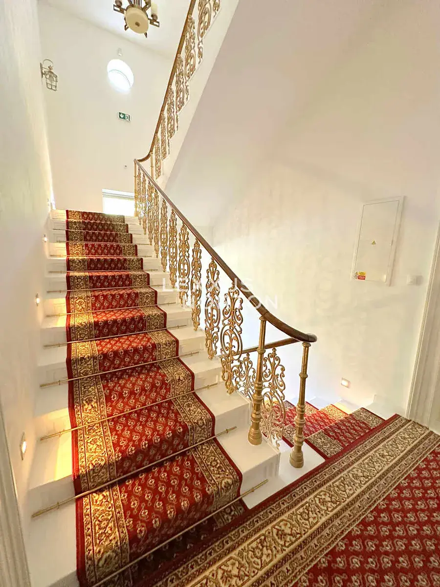 Interiér snoubí historický charakter s moderním komfortem, naleznete zde litinové radiátory vyrobené na zakázku, originální kachlová kamna a starožitný nábytek. Exteriér vily je stejně promyšlený jako interiér. Přední část oplocení tvoří na zakázku vyrobený kovaný plot s vjezdovou bránou. Rozsáhlý pozemek nabízí zahradu s altánem ideální pro venkovní oslavy a setkání, vlastní parkoviště o rozloze cca 200 m² s kapacitou minimálně pro 10 automobilů, zahradní domek a také samostatný domek, který může sloužit například pro správce. Přímo z jídelní místnosti je přístupná prostorná terasa pro hosty.