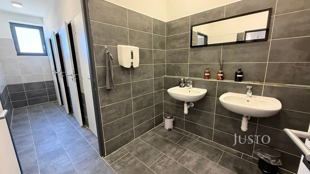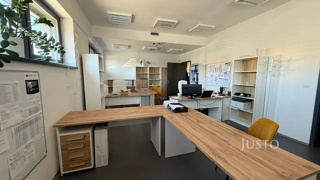 Kanceláře jsou umístěny v 1. nadzemním podlaží a nabízejí flexibilní uspořádání pro zázemí menší i středně velké firmy. Prostory jsou velmi dobře dispozičně řešeny, s dostatkem denního světla a nadstandardními plastohliníkovými okny. Moderní recepce a jednací místnost s designovým nábytkem podtrhují reprezentativní charakter celého objektu. Podlahy i stěny jsou z kvalitních materiálů, které vytvářejí příjemné a profesionální pracovní prostředí. Objekt je bezbariérový, což zajišťuje pohodlný přístup pro všechny zaměstnance i návštěvy.