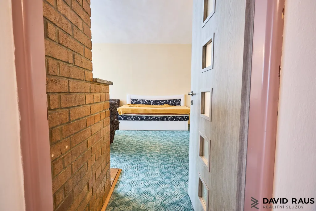 Do domu vstupujeme přes prostornou zastřešenou verandu se zasklením, která slouží jako vstupní hala a zároveň příjemný přechod mezi venkovním a vnitřním prostorem. Z této části je zajištěn přístup do jednotlivých obytných částí domu, které lze v případě potřeby oddělit. V přízemí se nachází první bytová jednotka, která nabízí dva samostatné pokoje, prostorný obývací pokoj s krbem navozujícím útulnou atmosféru, dále kuchyni a koupelnu. Z chodby je praktický vstup do suterénu, kde se nachází garáž a další technické a skladovací prostory. Dispozice přízemí poskytuje komfortní zázemí pro rodinné bydlení. Z hlavní chodby je dále přístup do druhé bytové jednotky umístěné v patře. Tato část domu disponuje kuchyní se vstupem na balkon či terasu, což zajišťuje příjemné propojení s venkovním prostorem. Součástí kuchyně je také praktická spíž. V patře se dále nachází ložnice, koupelna s vanou a samostatné WC. Prostor působí světlým a vzdušným dojmem a je vhodný jako samostatná bytová jednotka. Velkou výhodou domu je jeho dispoziční variabilita – díky uspořádání a vstupům lze nemovitost upravit až na tři plně oddělené bytové jednotky. Dům je kompletně podsklepený. V suterénu se nachází technické zázemí, prádelna, skladovací prostory a také stylová místnost využívaná jako vinárna či prostor pro posezení. Nechybí ani praktický sklep vhodný například pro uskladnění potravin.
