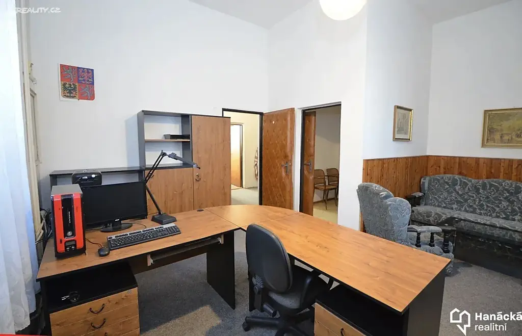 Nabízíme pronájem tří navzájem propojených kanceláří v přízemí nebytového prostoru na ulici Holická. Prostřední kancelář o velikosti 15m2 disponuje malou kuchyňkou s přívodem vody. Napravo je zasedací místnost o velikosti cca 20 m2 a nalevo kancelář cca 18 m2. Sociální zařízení je společné na druhém konci chodby. Nájemné zahrnuje poplatky za vodu, energie a topení.