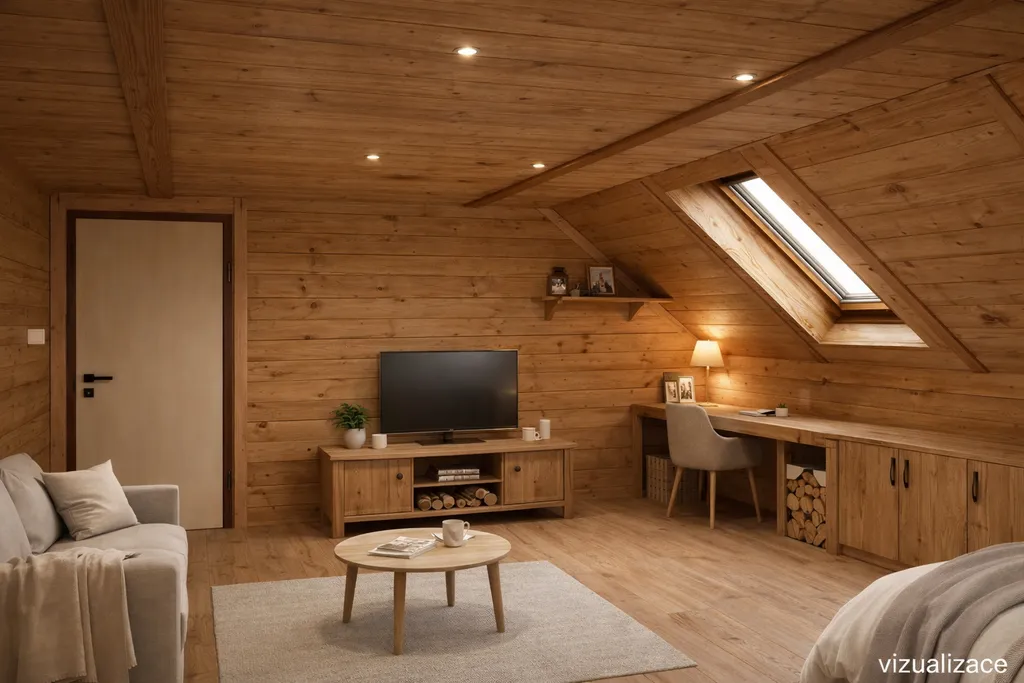 🏠 Na tuto část navazuje půda o velikosti cca 100 m² (dle zastavěné plochy), která umožňuje vybudování dalších obytných místností a výrazné rozšíření prostoru.