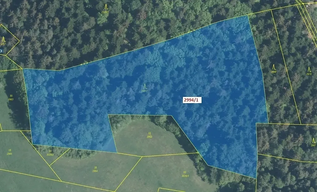 Lesní pozemek o výměře 15 135 m2, parcelní číslo 2994/1, podíl 1/1, katastrální území Lačnov, obec Lačnov, obec s rozšířenou působností Vsetín, okres Vsetín, Zlínský kraj. Částečně po těžbě.