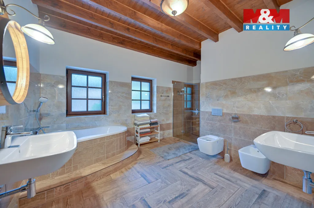 Dům prošel kompletní a citlivou rekonstrukcí, přístavbou i modernizací interiéru s důrazem na kvalitu materiálů, detail a nadčasovou eleganci. Dům je plně napojen na inženýrské sítě (plyn, elektřina, kanalizace, obecní voda) a zároveň disponuje vlastní studnou.