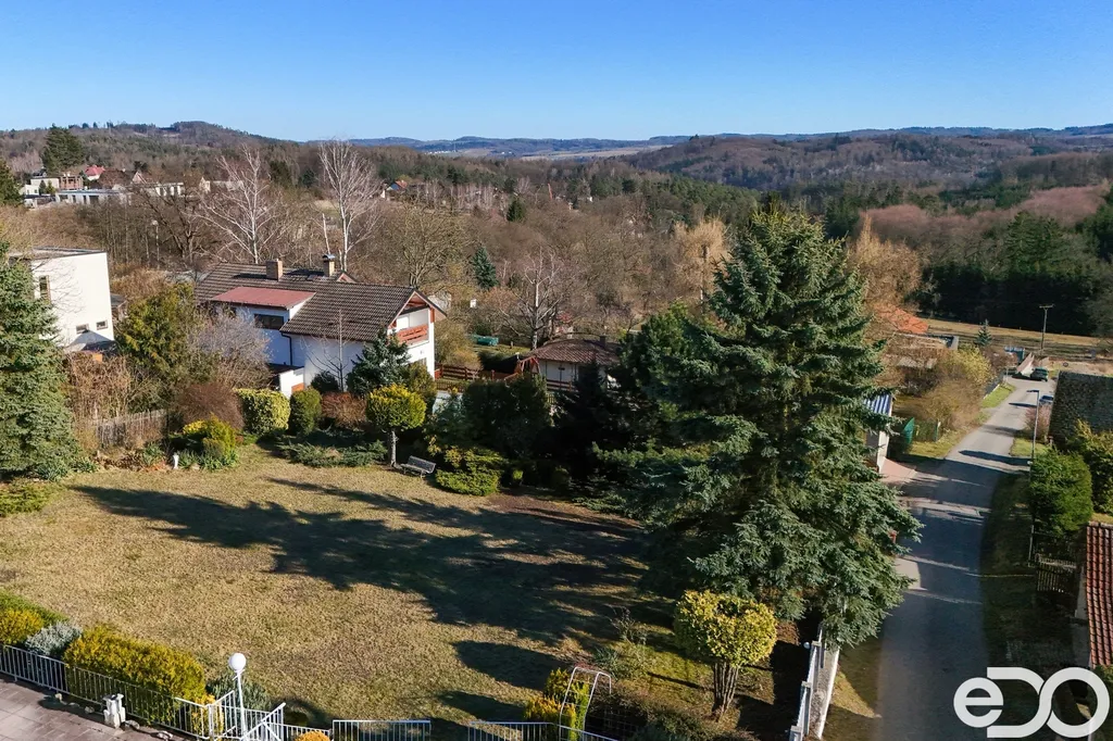 Pozemek o výměře 1 729 m² v klidné okrajové části Senohrab s otevřeným výhledem do okolní krajiny a lesů.