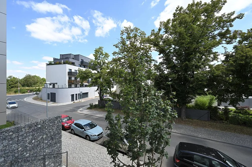 Pronájem moderního tichého bytu 2+kk 58 m2 s jihovýchodní orientací, jižní krytou terasou 12 m2, na východ orientovanou ložnicí, vše dostupné z centrální haly. Stejně tak koupelna s oddělenou toaletou.