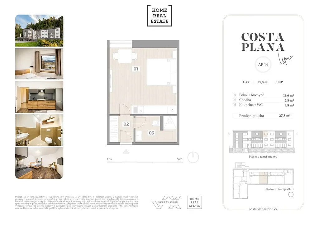 Home Real Estate si dovoluje exkluzivně nabídnout k prodeji plně vybavený designový apartmán o dispozici 1+kk s výhledem na Lipno, o podlahové ploše 27,8 m², který se nachází v 3NP projektu Costa Plana Lipno.