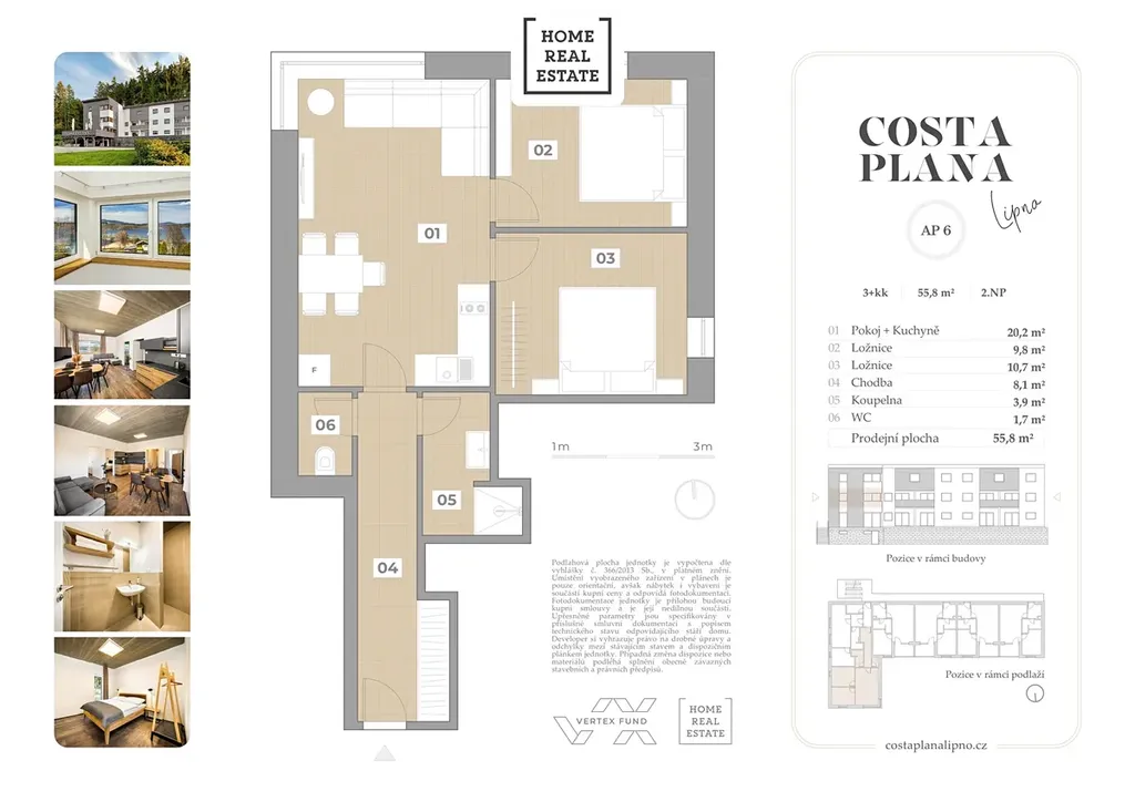 Home Real Estate si dovoluje exkluzivně nabídnout k prodeji plně vybavený designový apartmán o dispozici 3+kk s výhledem na Lipno, o podlahové ploše 55,8 m², který se nachází v projektu Costa Plana Lipno.