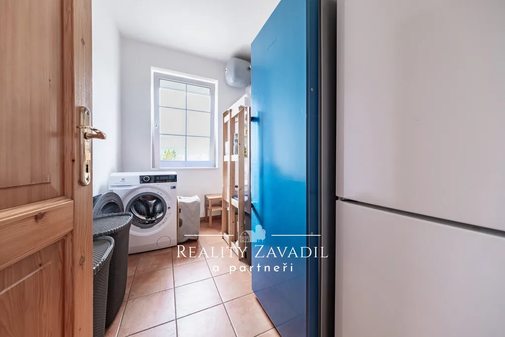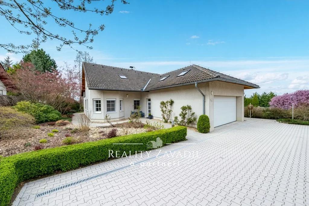 Podkroví (38 m²) nabízí praktický úložný prostor. V domě je dvougaráž (37,5 m²) a s prostorem na dílnu.