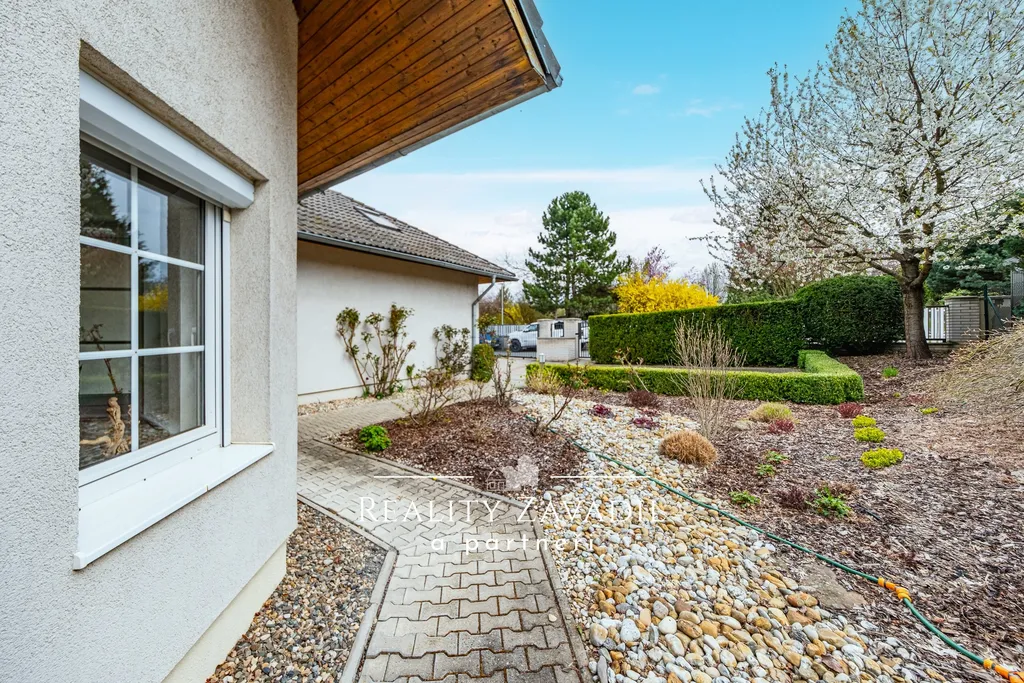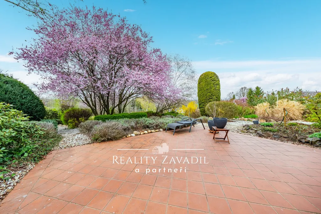 Dům je obklopen krásnou, udržovanou, vzrostlou zahradou o rozloze 1 182 m², která poskytuje dostatek klidu, soukromí i prostoru pro odpočinek. Nechybí ani prostorná terasa s přímým vstupem z obývací části a výhledem do zeleně.