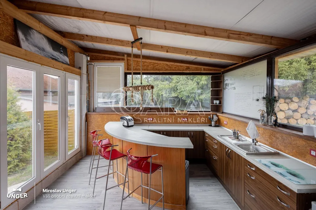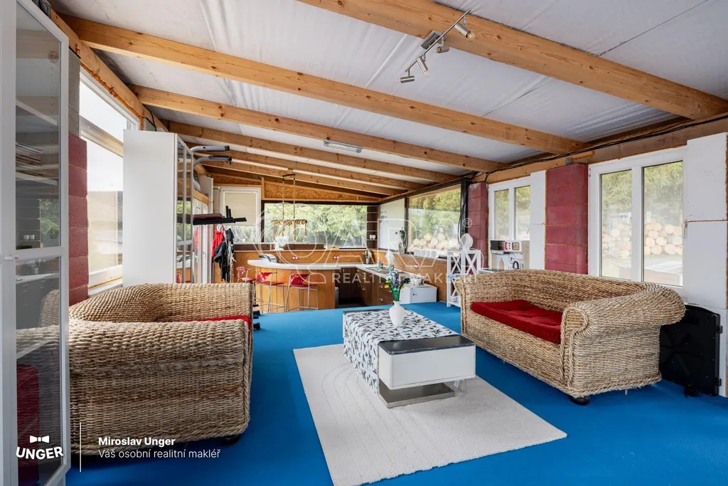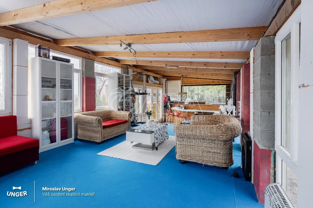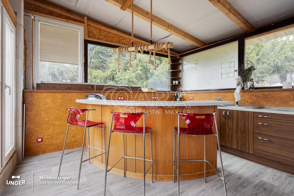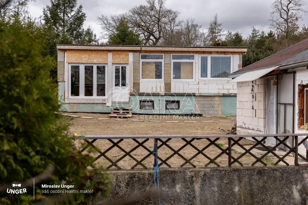 Velký pozemek celkem 1.540 m2. Chata je napojena na emektřinu, vodu z vlastní vrtané studny, odpad je řešený septikem. Ohřev vody je řešen elektrickým bojlerem a vytápění je zajištěno pomocí klimatizací (tepelným čerpadlem). Interiér je po moderní rekonstrukci - obyvatelné přízemí (3+kk) + další prostory v suterénu + garáže + samostatná stavba naproti chatě pro posezení s příteli.