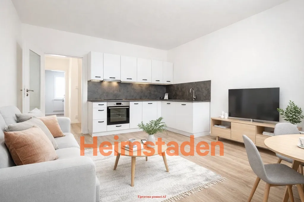Byt nabízí tři obytné místnosti, přičemž hlavní obytný prostor je přirozeně propojen s kuchyňskou částí, což vytváří vzdušné a moderní řešení bydlení ideální pro každodenní život.
