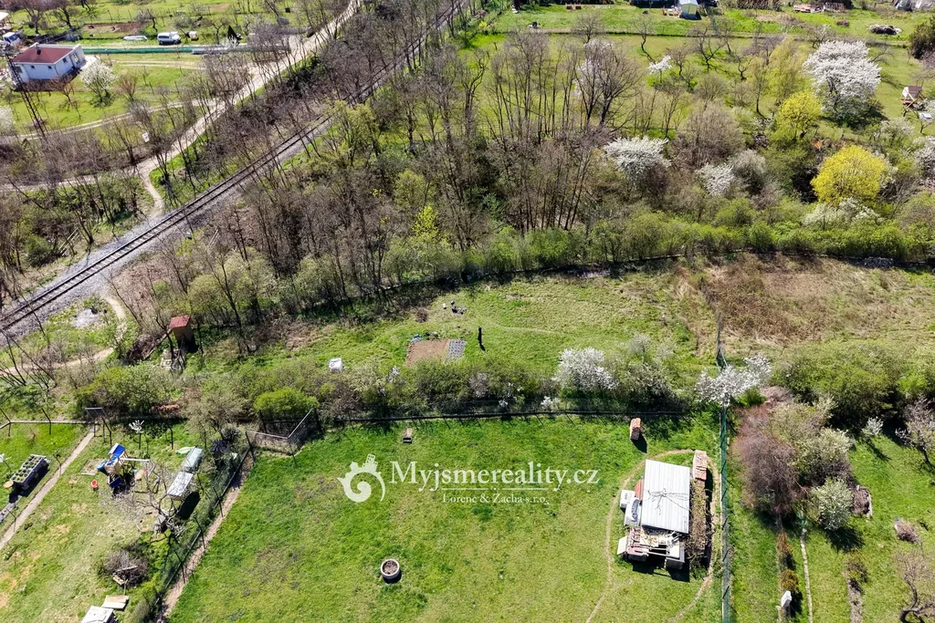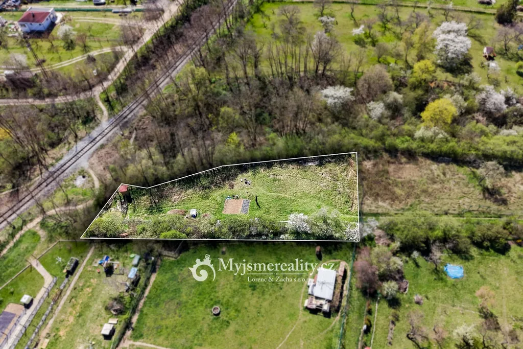 Součástí prodeje je také 1/2 podíl na příjezdové cestě o výměře 456 m². Zadní část pozemku ohraničuje železniční trať, která vytváří přirozené oddělení a zachovává soukromí.