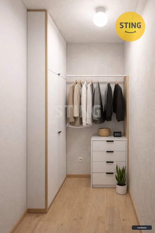 Byt je v původním stavu a nový majitel má tedy možnost si jej zrekonstruovat podle svých představ. V pokojích jsou na podlaze původní parkety, ve zbytku bytu je betonová podlaha pokrytá PVC. Kuchyň je orientovaná na západ a je z ní východ na lodžii s krásním výhledem. Obývací pokoj je orientován rovněž na západ a ložnice směřuje na východ. Dům stojí ve slepé ulici a je zde minimální provoz. Součástí bytu je praktická komora. Fotografie interiéru jsou řešeny jako porovnání vizualizace budoucího možného stavu a stavu stávajícího.
