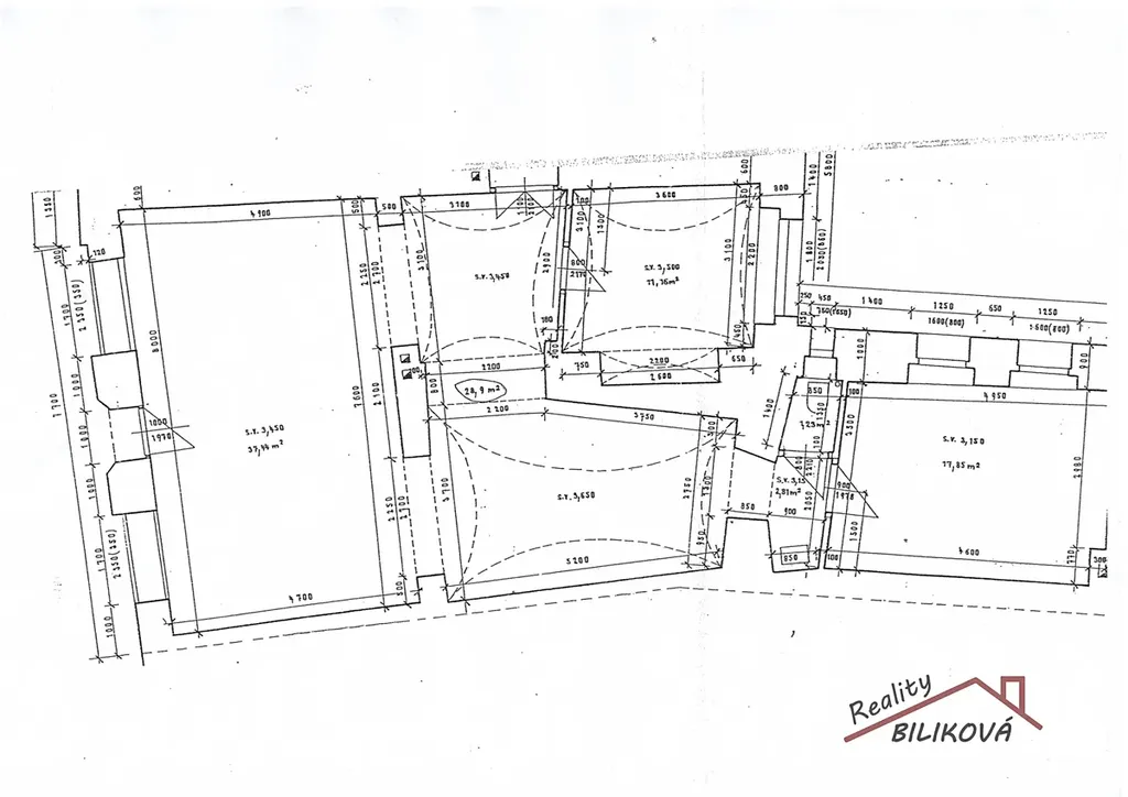 Samotná prodejna je členitá na více místností (37,44m2, 28,9m2, 11,16m2 a 17,85m2 a 2,8m2). Vstup má i z průjezdu domu (pro zaměstnance).