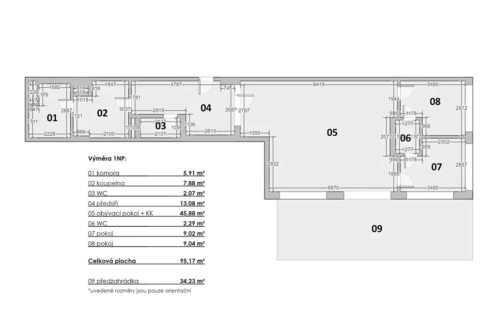 Ve druhém podlaží jsou další tři samostatné místnosti, které lze využít jako kanceláře vedení, jednací prostory nebo klidové pracovní zóny, dále šatna a koupelna se sprchou, vanou a toaletou.