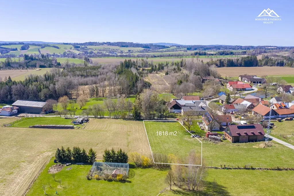 Pozemek se nachází v klidné části obce s krásným výhledem obklopený loukami a lesy a je dle územního plánu vhodný k výstavbě rodinného domu SV - smíšené obytné venkovské - bydlení v rodinných domech.