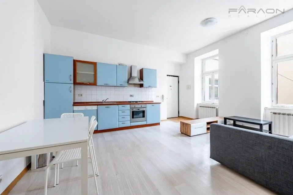 Zařízený byt 2+kk (43m2) k pronájmu v ulici Na bělidle, hned u metra Anděl, Praha 5 - Smíchov. Byt se nachází v 2. patře historického činžovního domu v místě plného života s okny do vnitrobloku. V okolí je veškerá občanská vybavenost, zastávky metro, tram a autobusů jen pár kroků od domu stejně jako restaurace, obchody, nákupní centra.
